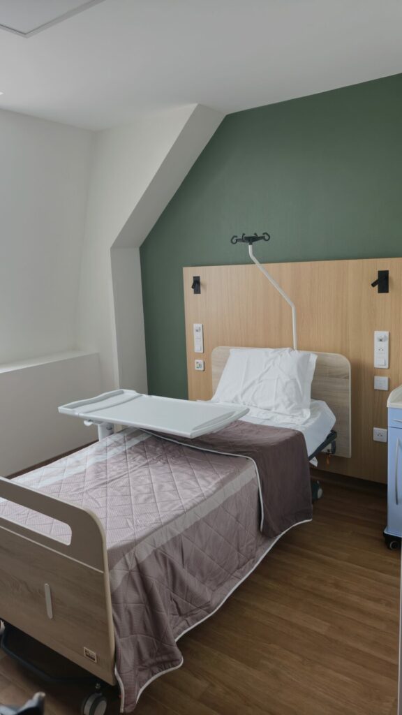 Au-delà des chambres, c’est tout l’environnement du quotidien qui est repensé, à l’instar d’une salle destinée à devenir une cuisine thérapeutique. « Une cuisine thérapeutique, cela permet à nos patients de travailler avec les ergothérapeutes par rapport à leur handicap et de voir comment adapter demain leur cuisine chez eux », explique le Commandant. Avec ses plans de travail ajustables en hauteur et ses outils adaptés, elle permet aux patients, qu’ils soient en fauteuil ou souffrent d’une perte de motricité, de se réapproprier leur quotidien en toute sécurité.